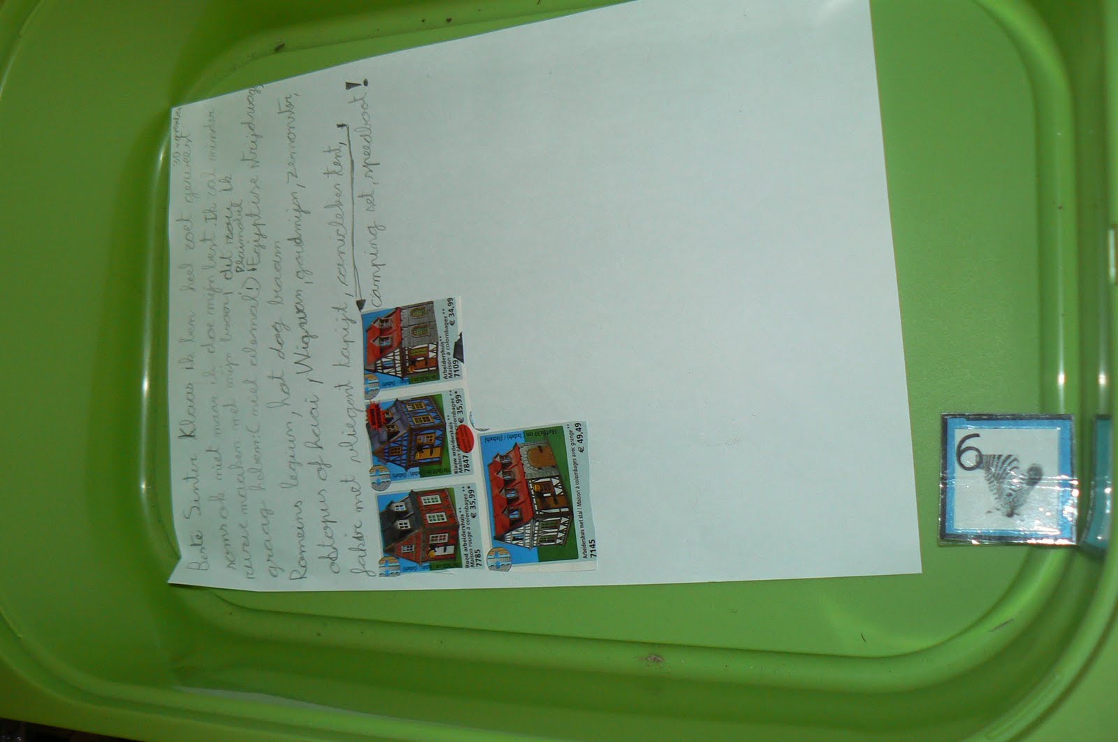 La carta para San Nicolás. Ya la empezó ayer pero se ve que le falaba inspiración para acabarla. Me parece que quiere pedir demasiadas cosas y le cuesta elegir ;). En principio San Nicolás traerá regalitos el 5 o el 6 de diciembre.